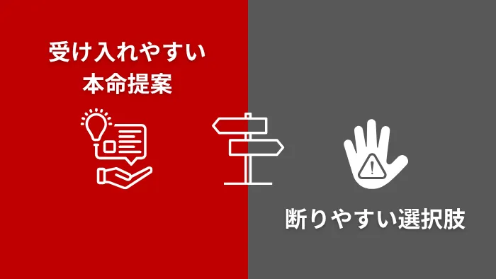 まず大きな提案を出して“断られる前提”をつくることで、その後の本命提案の心理的ハードルを下げ、通りやすくする手法です。