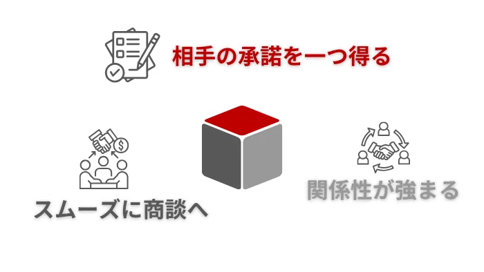 相手の承諾を一つ得るごとに関係性が強まり、最終的な商談に自然と進みやすくなります。