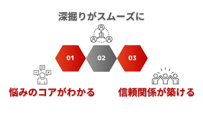 ポイントは、先に課題を聞くことで“相手に合った提案”ができる状態をつくることです。