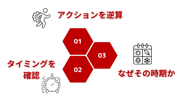 インサイドセールスでは、検討時期が明確になれば次のアクションを逆算でき、商談化の確度が高まります。特に決算期や繁忙期など社内事情に合わせたタイミングを確認しておくことで、無駄な接触や機会損失を防げます。重要なのは「なぜその時期か」を自然に引き出すことです。