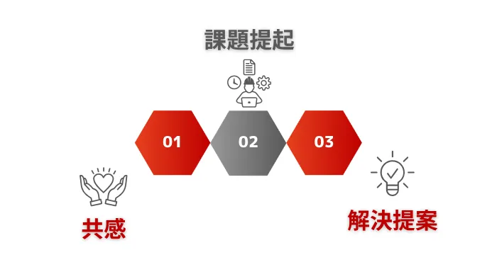 「共感→課題提起→解決提案」の流れは、相手の立場を理解したうえで自然に本題へ入る鉄板の順序です。