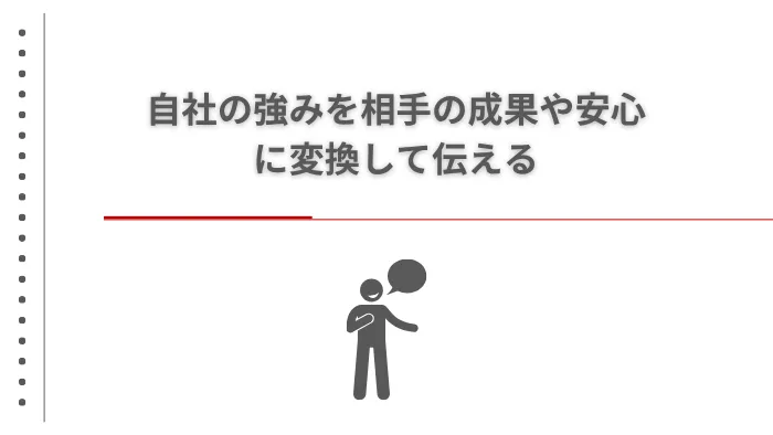 ポイントは「自社の強みを“相手の成果や安心”に変換して伝えること」です。
