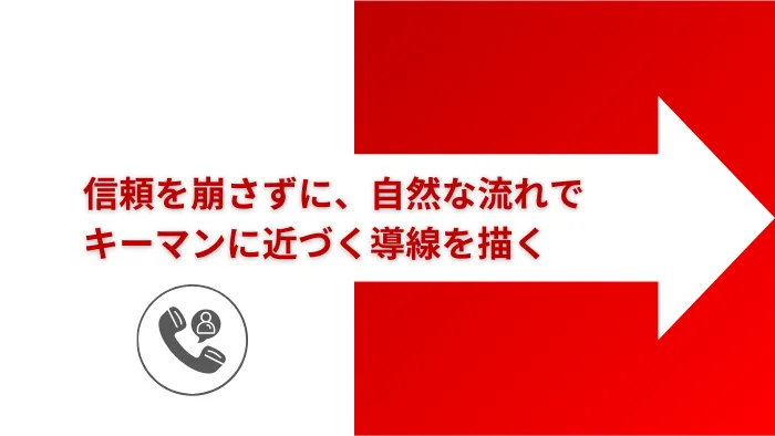 ポイントは、窓口担当との信頼を崩さずに、自然な流れでキーマンに近づく導線を描くこと。