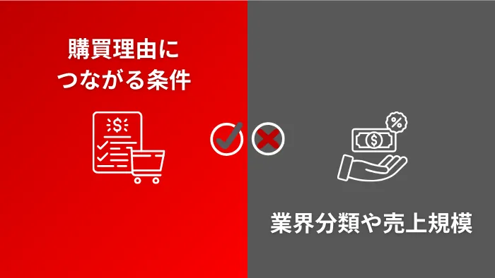 ポイントは、単なる業界分類や売上規模ではなく「購買理由につながる条件」を切り口にリストを組み立てること。