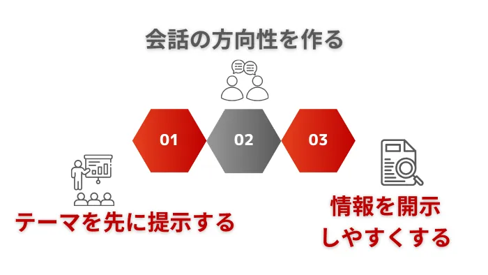 ポイントは、相手が口にしやすいテーマを先に提示して、会話の方向性を作ってあげること。
