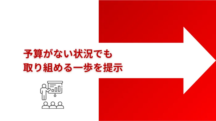 「予算がない」と返される場面はよくありますが、その一言で会話を終わらせるのは惜しいです。相手の懐事情に寄り添いながらも、低負担で始められる提案や段階的な導入の工夫を示すことで、次の話につなげやすくなります。大切なのは「予算がない状況でも取り組める一歩」を提示して、関心を引き続けることです。