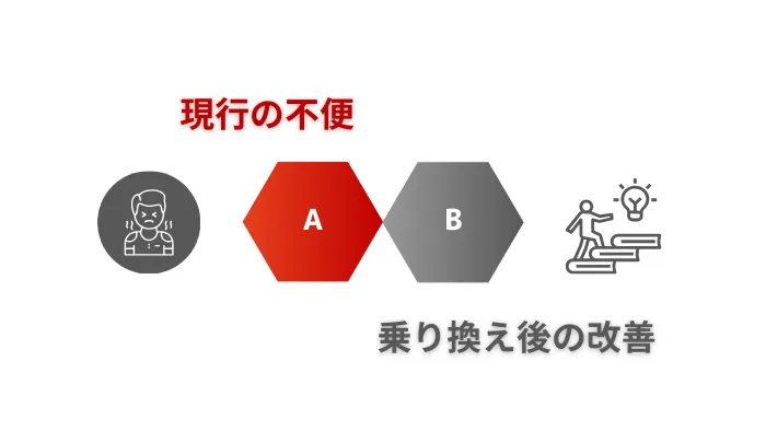 このトークのポイントは、「現行の不便→乗り換え後の改善」というストーリーを数字や期間で示すこと。お客さまが“自分の会社でどう変わるか”を自然に想像できるかどうかが鍵になります。