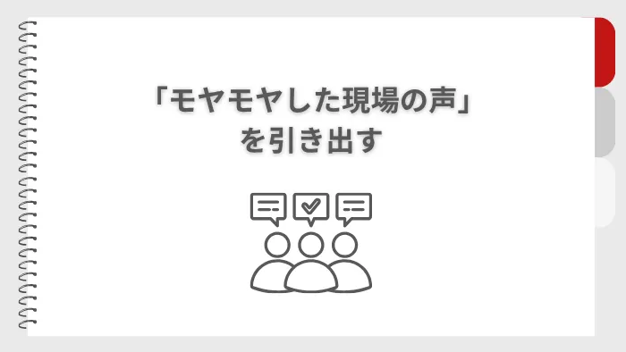 「今、現場で困っていることって何ですか?」→“いや実は…”と急に口が滑らかになる