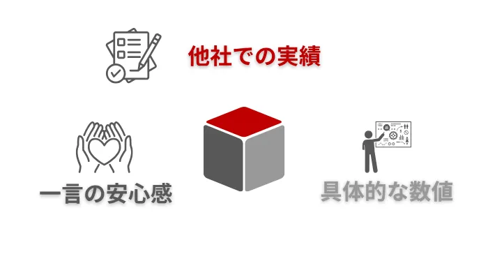 たとえば「他社での実績」「具体的な数値」「一言の安心感」があるだけで、お客様の聞く姿勢がまったく変わってきます。