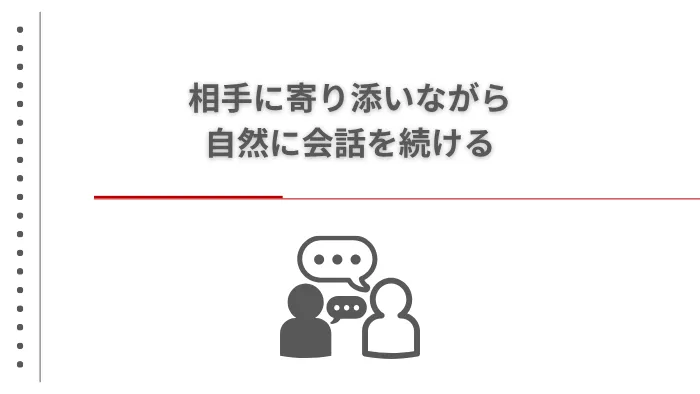 このトークのポイントは、相手の話し方・言葉のリズム・感情に丁寧に寄り添いながら自然に会話を続けること。