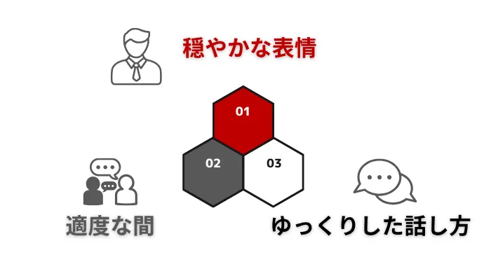 だからこそ、話す内容を詰めるより先に、穏やかな表情・ゆっくりした話し方・適度な間を意識するだけで、相手の警戒心は自然と和らぎます。