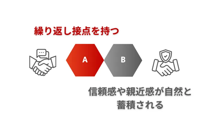 同じ相手と繰り返し接点を持つことで、信頼感や親近感が自然と蓄積されていきます。