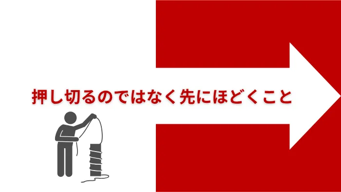 ポイントは、「押し切る」ではなく「先にほどく」です。
