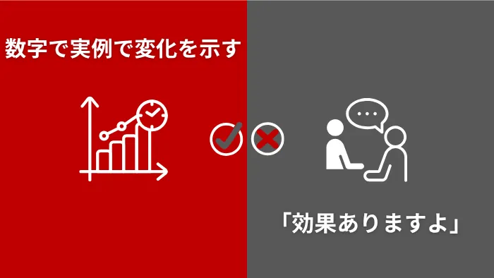 たとえば、「導入後3日でトラブル解決した事例を共有する」「競合より半年早く効果が出た数値を見せる」などが有効です。