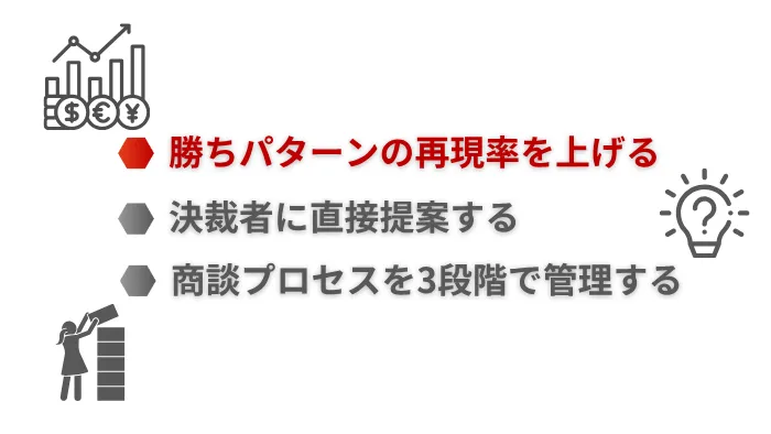 ポイントは、数字を比べることではなく「勝ちパターンの再現率を上げる」ことです。