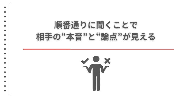 これは、相手の本音にたどり着くための“道順”を自分の中で可視化する作業です。