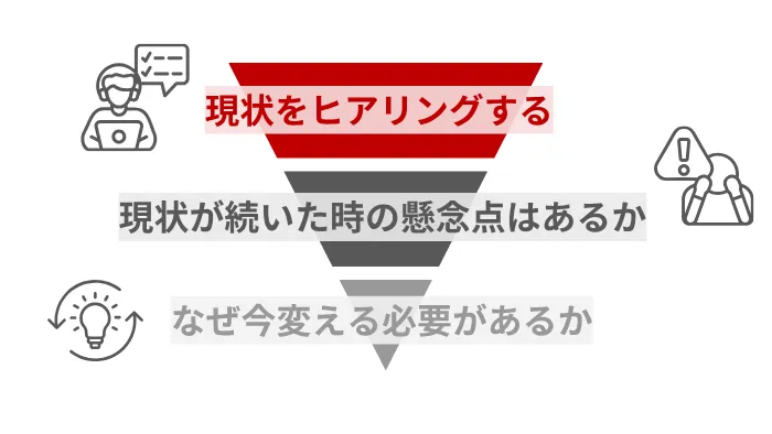 ポイントは、顧客が“気づいていない前提”を一緒に整えていくことです。