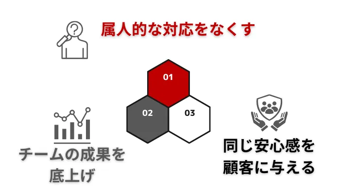 属人的な対応をなくすことで、どの担当者でも同じ安心感を顧客に与えられます。