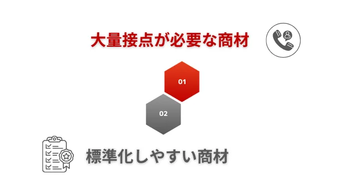 BPO化が向いているのは、「大量接点が必要」または「標準化しやすい」商材です。