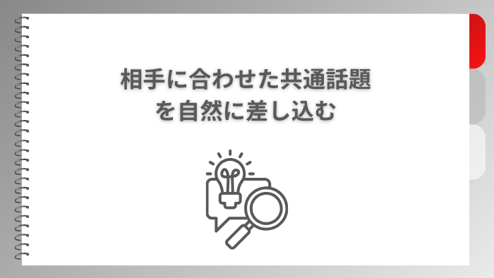ポイントは「相手に合わせた共通話題」を自然に差し込み、笑顔や相槌で場を温めること。