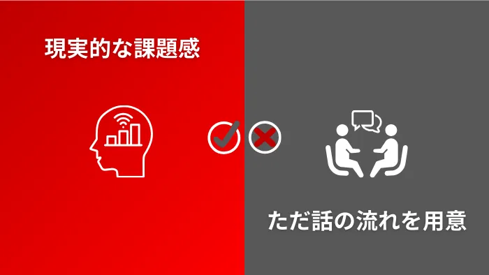 ポイントは、ただ話の流れを用意するのではなく「相手が抱える現実的な課題感」を反映させることです。