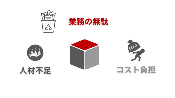 より具体的には、「業務の無駄」「コスト負担」「人材不足」の3つを切り口に深掘りすると、経営層にも響きやすい整理ができます。