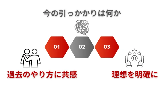 過去のやり方にまず共感し、今の“引っかかり”を聞いたうえで、理想を明確にしてもらうことで、相手も気づいていなかったニーズが自然に見えてきます。
