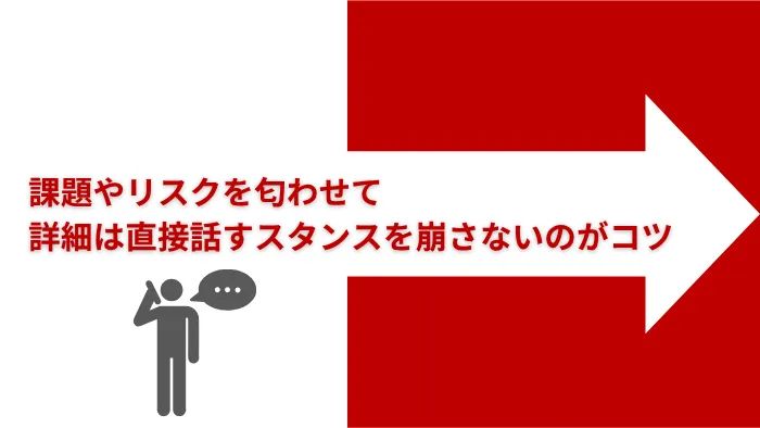課題やリスクを匂わせながら、詳細は直接話すスタンスを崩さないのがコツ。