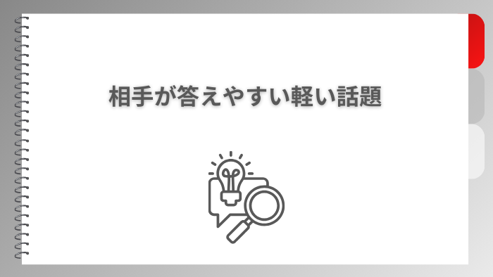 ここで有効なのが「相手が答えやすい軽い話題」から始める方法です。天気や移動経路だけでなく、業界ニュースや共通のイベントに触れると、自然に会話の流れが生まれます。