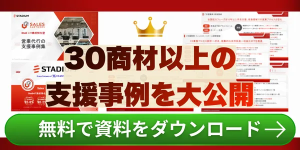 「もっと詳しく教えて欲しい」「これ、うちにも当てはまるかも」と思った方は、ぜひ営業のプロ集団「スタジアム」に無料で相談してみましょう。