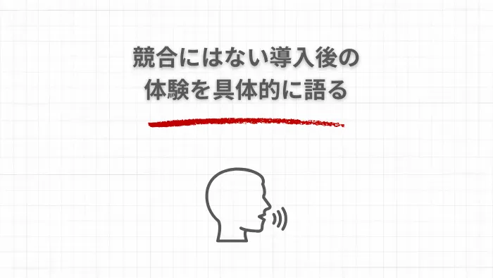 差別化の肝は「競合にはない導入後の体験」を具体的に語ることです。顧客の不安を解消し、「この会社なら任せられる」と感じてもらえる瞬間を作ることができます。