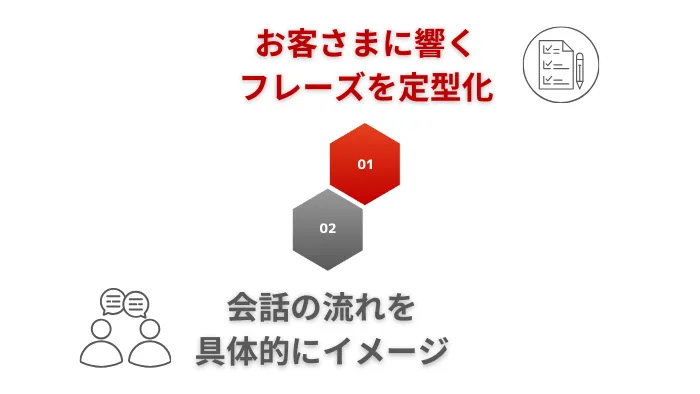 お客さまが迷うポイントを前もって想定し、段階ごとに使えるクロージングフレーズを用意しておくと、自然な会話の流れの中で背中を押すことができます。