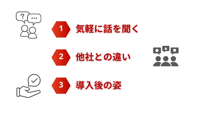 ヒアリングでは「聞き方」を整えておくことで、相手が本音を話しやすくなります。