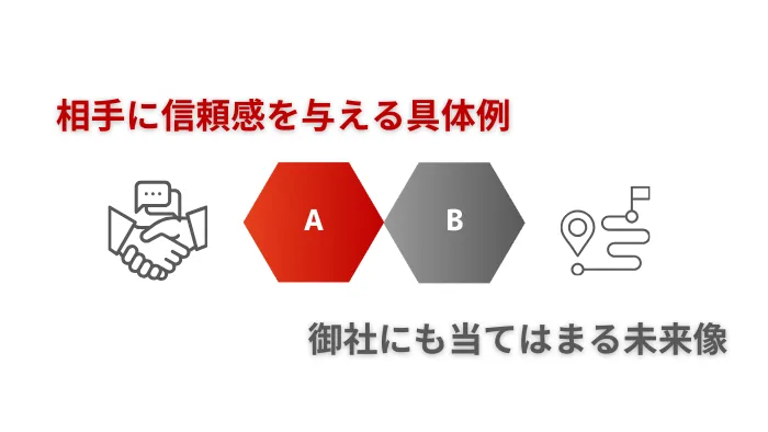 このトークのポイントは、相手に信頼感を与える具体例を最初に示し、次に御社にも当てはまる未来像を短文で描くことです。
